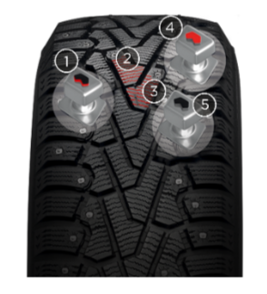 3. Широкое основание шипа гарантирует стабильность характеристик на льду и оптимизированное распределение нагрузки.